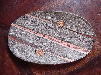 Piatti con inserti in legno, ottone e sassi